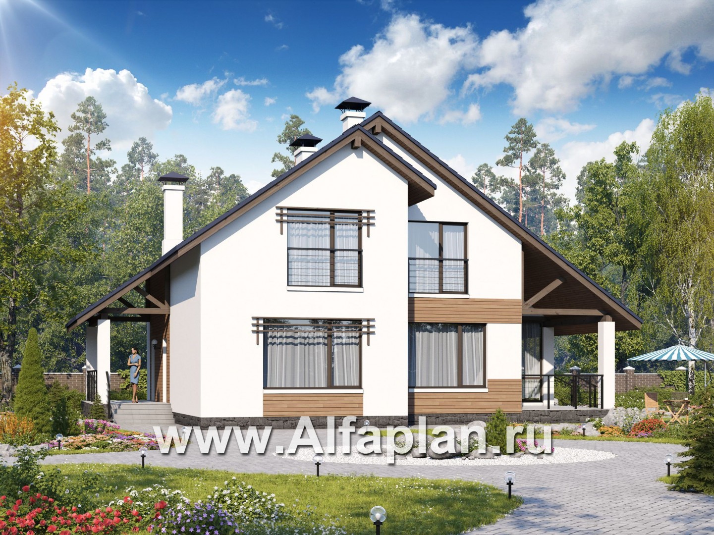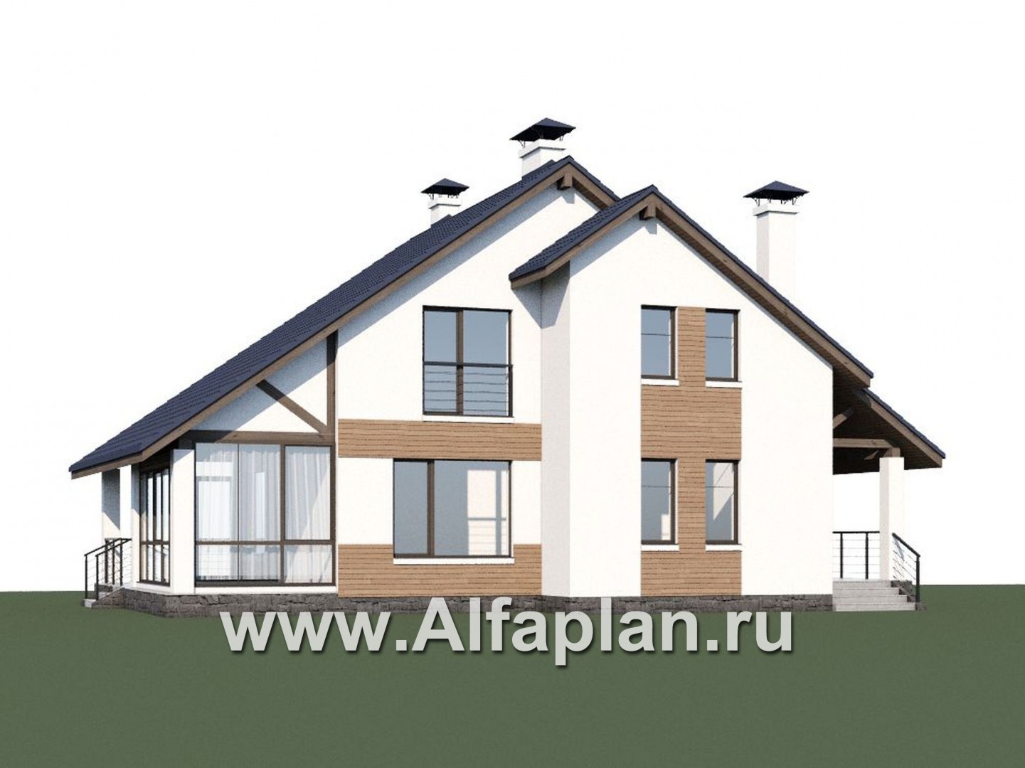 539A-S «Счастье рядом» - проект дома с мансардой, с террасой, в современном стиле